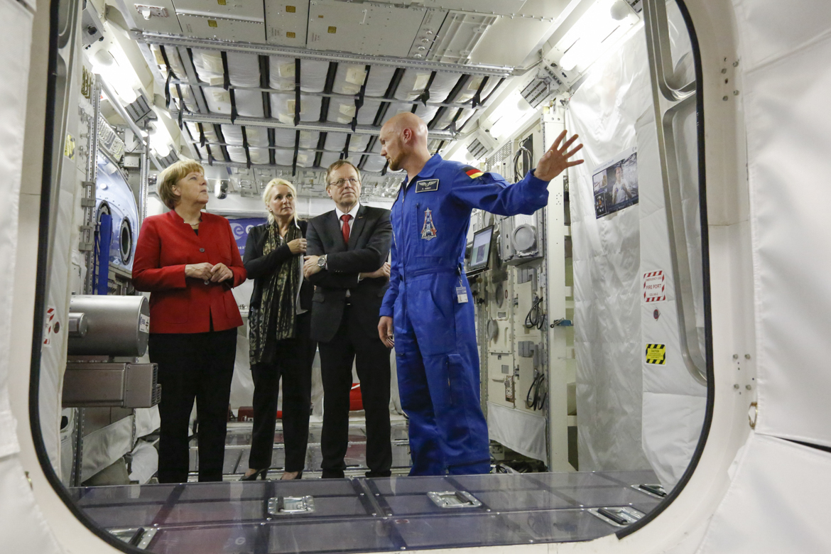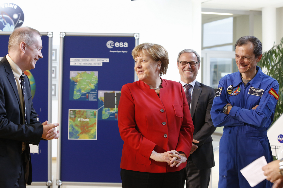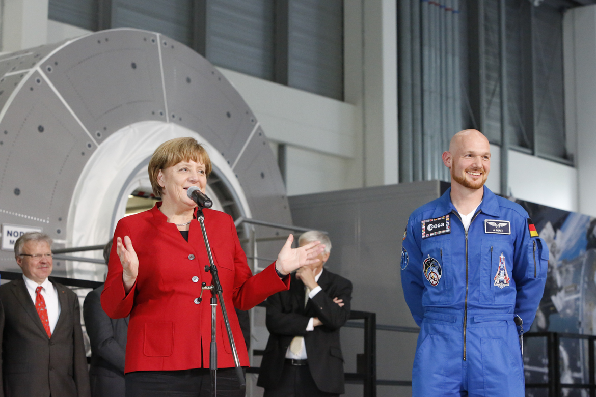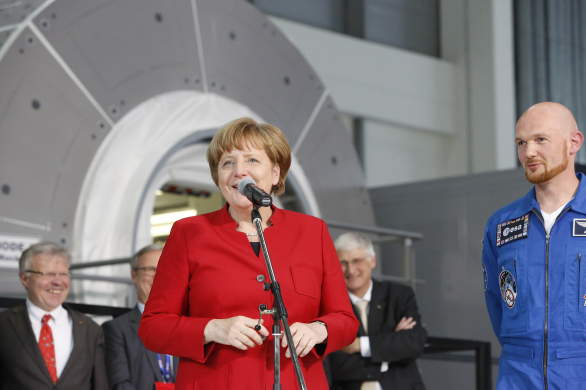 Angela Merkel trifft Alexander Gerst bei der esa in Köln